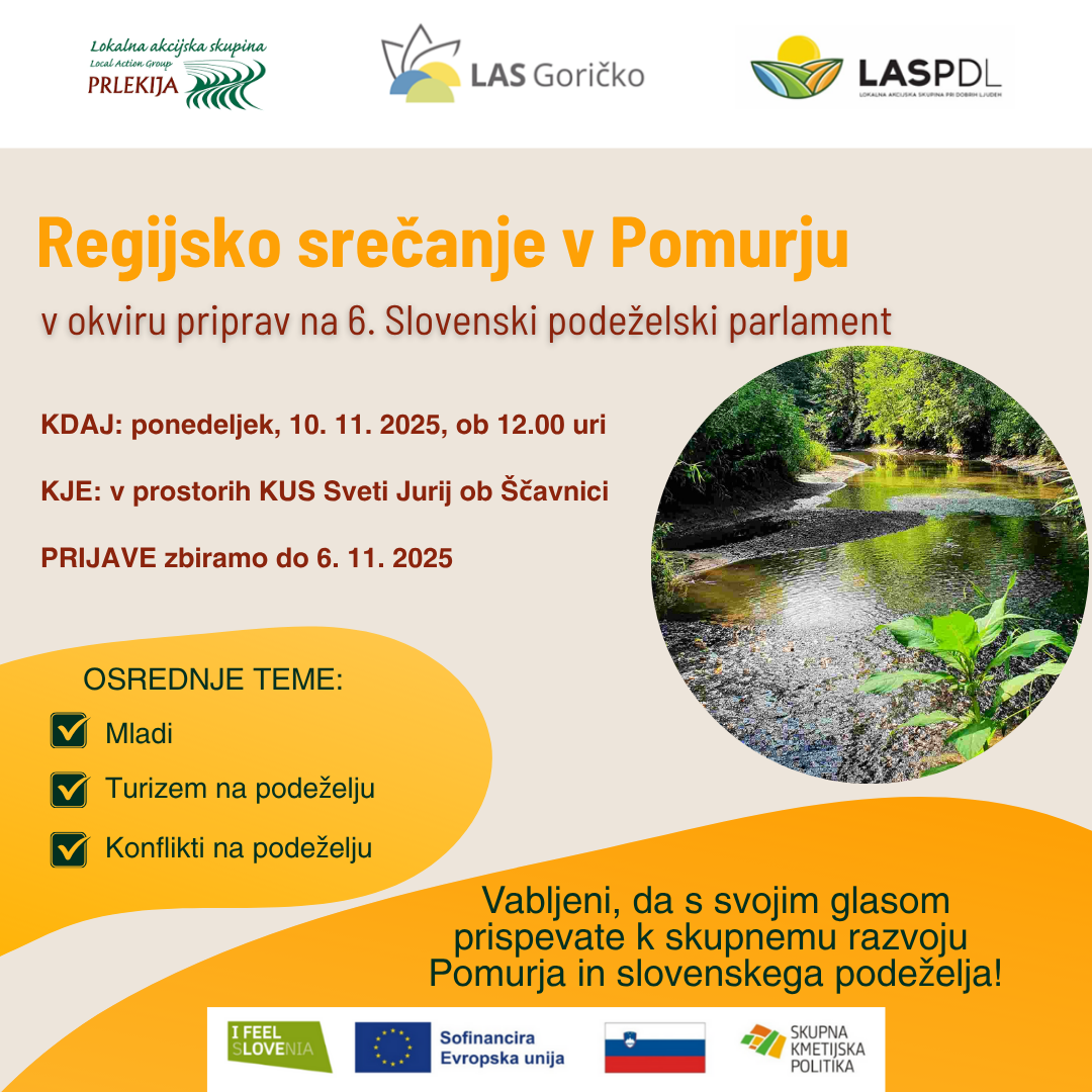 Regijsko srečanje je del priprav na 6. Slovenski podeželski parlament, ki bo potekal junija 2026. Dogodek ponuja priložnost, da predstavniki lokalnih skupnosti, nevladnih organizacij, razvojnih agencij, izobraževalnih ustanov, kmetov, mladih, gospodarstva, okoljskih organizacij in vsi, ki sooblikujete prihodnost podeželja po načelu »od spodaj navzgor«.